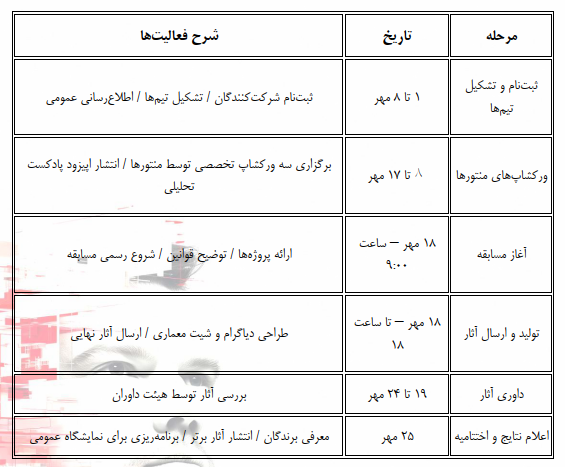 • امکان شرکت به‌صورت فردی یا تیمی وجود دارد (تیم‌بندی پس از ثبت‌نام انجام می‌شود).